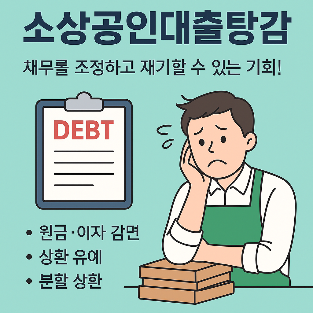 소상공인을 위한 대출탕감 제도 안내. 원금·이자 감면, 상환 유예, 분할 상환 등 채무 조정 방식과 신청 절차, 유의사항, 재창업 연계까지 한눈에 정리했습니다.