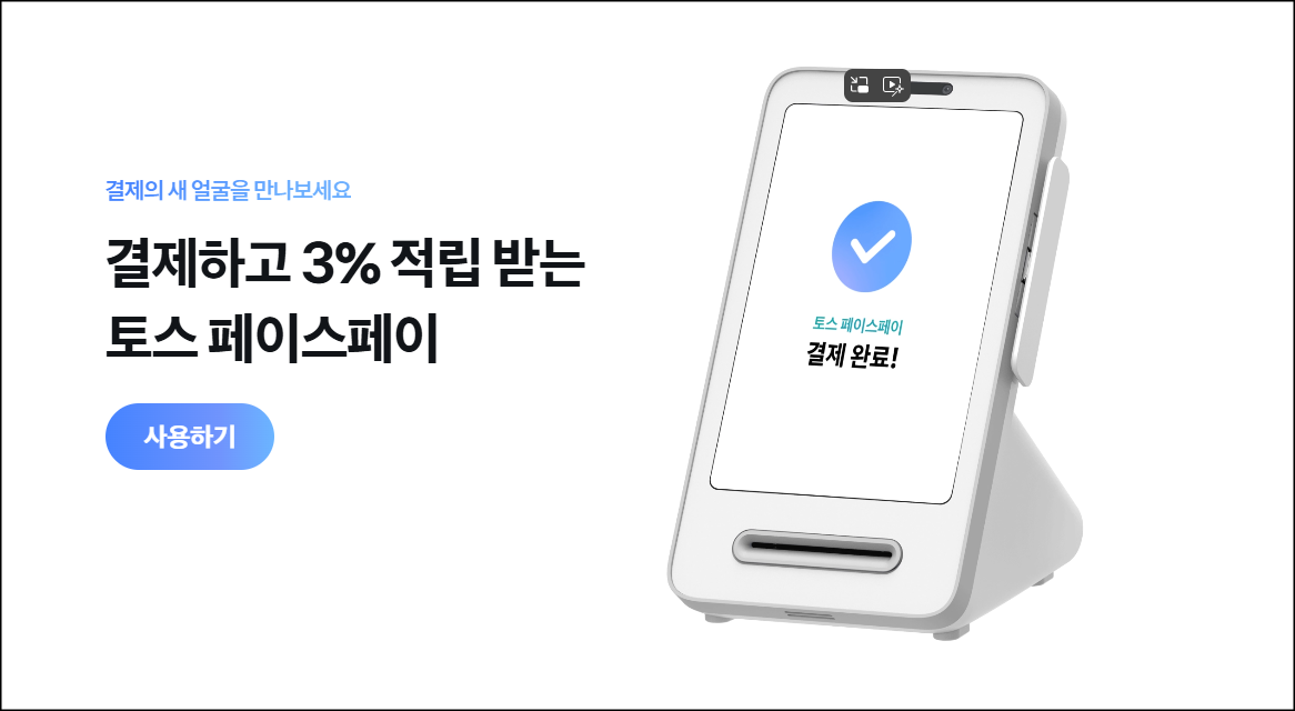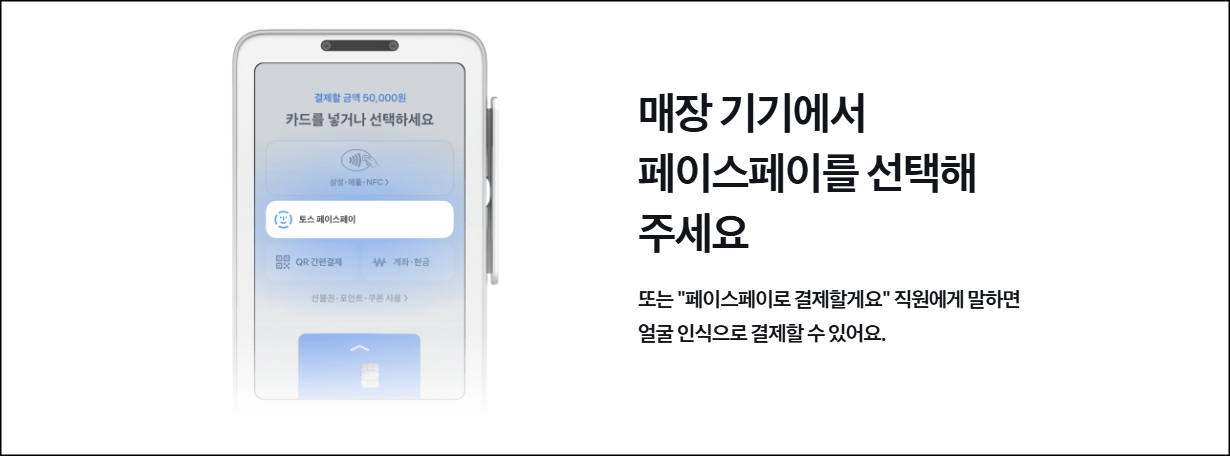 얼굴만 스캔하면 결제가 끝나는 놀라운 경험, 토스 페이스페이! 지갑이나 스마트폰을 꺼낼 필요 없이, 낯선 기술에 대한 두려움도 없이, 누구나 쉽고 안전하게 이용할 수 있는 토스 페이스페이