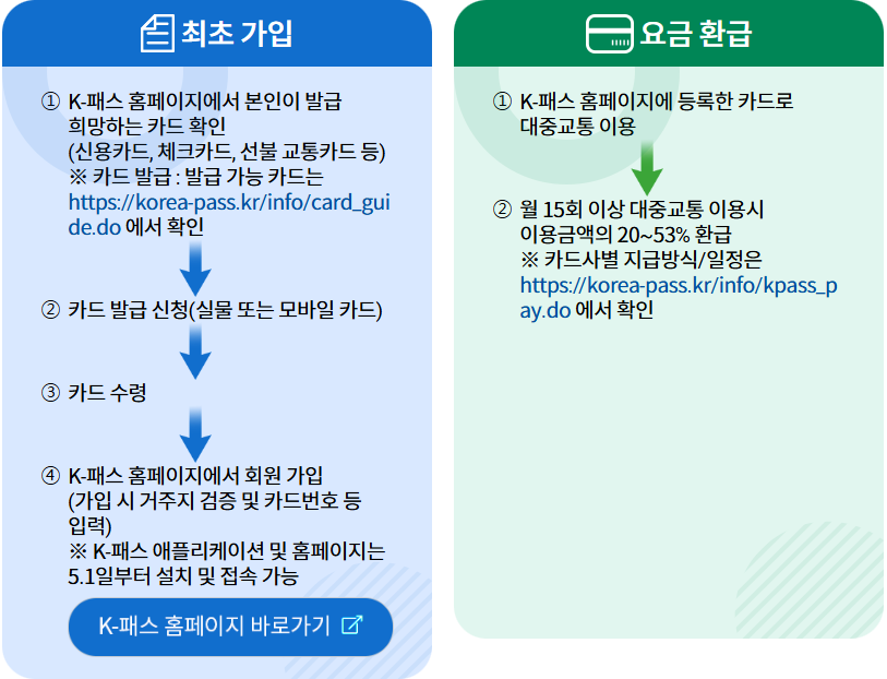 - 실물 카드 수령 후 K패스 앱에 등록해야 혜택 적용됨